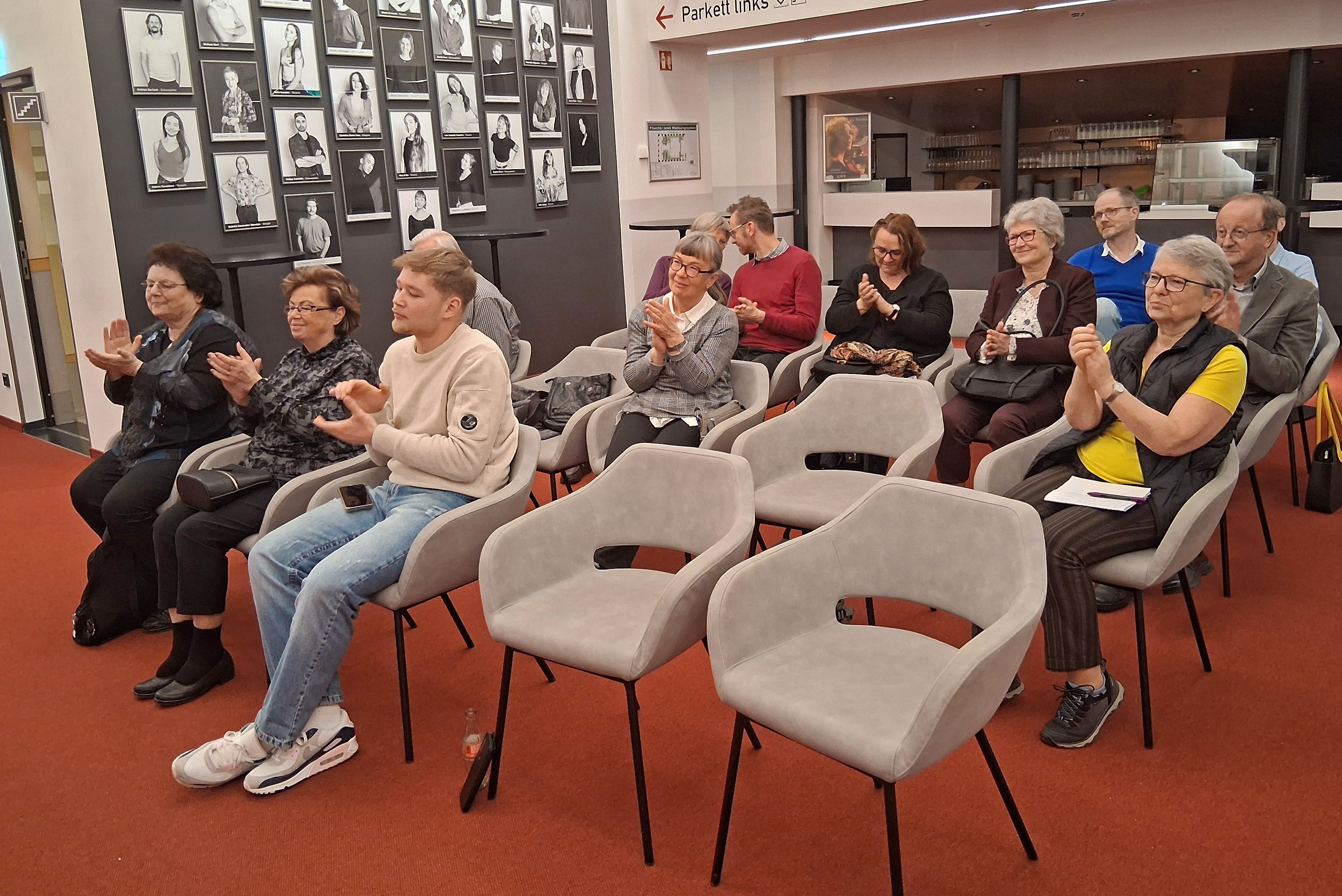 Als spannend beischrieb Sebastian Undisz auch die Zusammenarbeit mit den Schauspielern, die so ganz anders ist als mit professionellen Sängern. Seit ca. 35 Jahren ist der „Schauspielkapellmeister“ an verschiedenen Theatern tätig, seit etwa 13 Jahren zusammen mit Dirk Löschner und nun seit ca. 2,5 Jahren im Theater Plauen-Zwickau. Besonders mag er, wie er uns erzählte, die Arbeit an Weihnachtsmärchen, von denen er mindestens 30 musikalisch ausgestattet hat. Und dabei ist es spannender, Bösewichte mit Musik zu zeichnen, als immer nur „die Guten“.