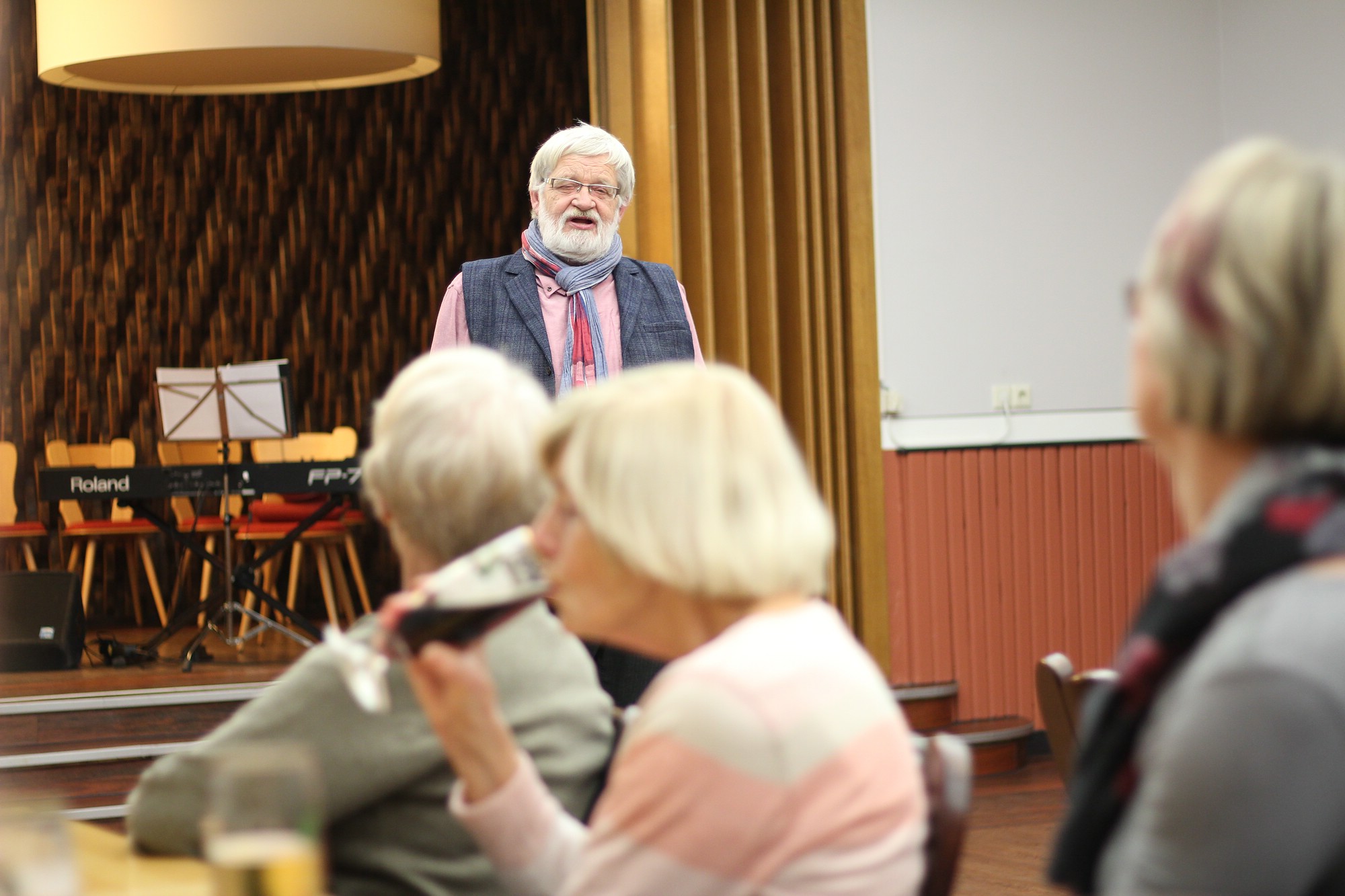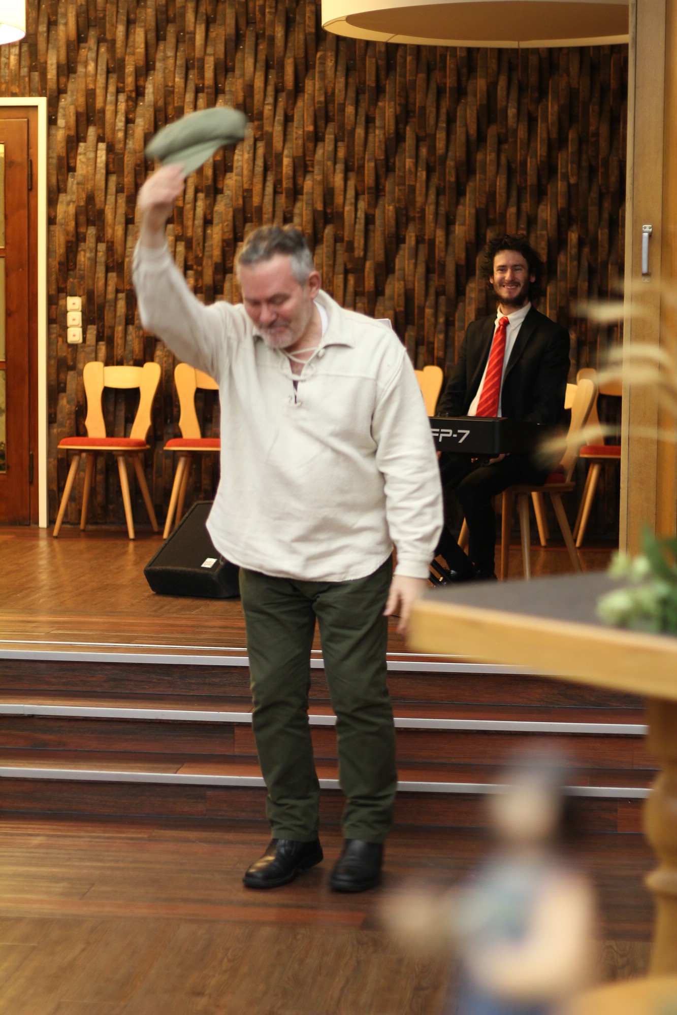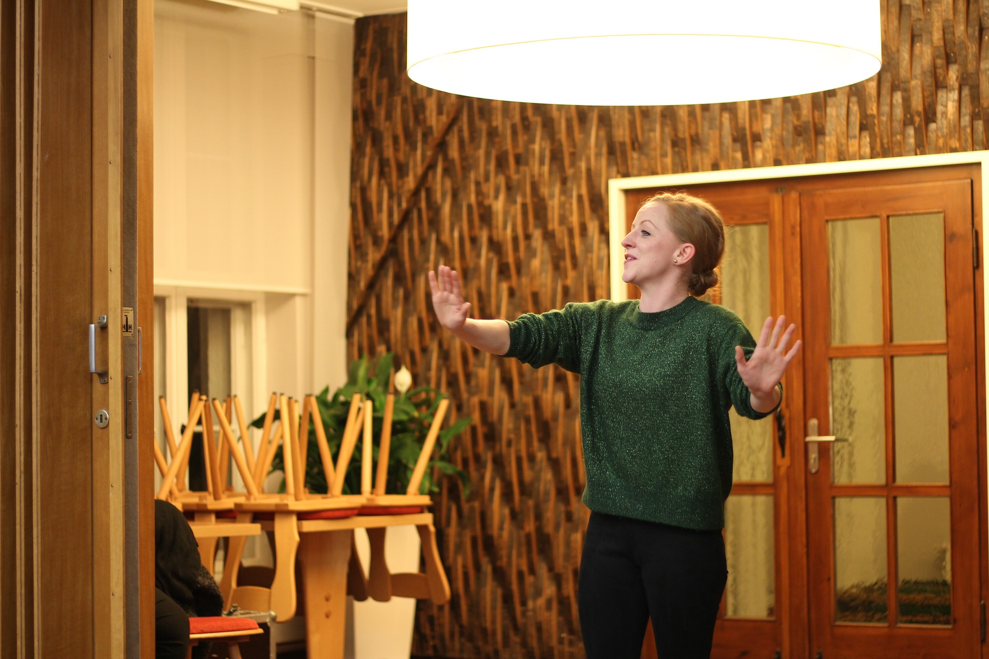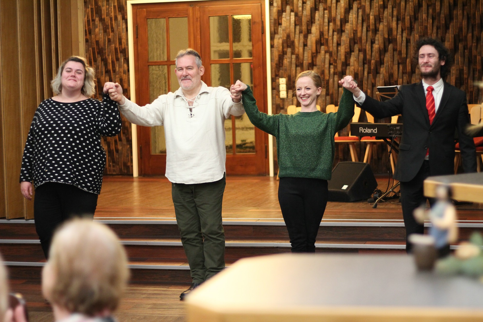Trotz Regenguss abends am 3. Dezember 2018, konnte man die Weihnachtsstimmung im Schalander der Mauritiusbrauerei spüren. Der Raum war weihnachtlich geschmückt und wer eine gute Nase hatte, konnte den Duft von Räucherkerzchen wahrnehmen. Unser Vorsitzender, Henry Klüglich, begrüßte die zahlreich erschienenen Gäste recht herzlich. Und, wie schon zu einer guten Tradition geworden, stimmten Künstler unseres Theaters musikalisch auf die Adventszeit ein. Maxi Ratzkowski, künstlerische Produktionsleiterin und leitende Dramaturgin Schauspeil am Theater, führte durch das Programm. Vom Milchmann aus “Anatevka“, gesungen von Frank Blees (Sänger, seit dieser Spielzeit im Ensemble), erfuhren wir, was er alles machen würde, wenn er einmal reich wäre. Spontan bekam der „arme Mann“ von einer Zuschauerin eine Kopfbedeckung. Schauspielerin Julia Hell schwärmte von ihrem himmelblauen Trabant, eine Kostprobe aus „Horch was kommt von Draußen rein“. Zum Abschluss konnten wir alle von einer weißen Weihnacht träumen. Vielleicht erfüllt sich der Traum. Musikalisch wurden die beiden Künstler von Mark Johnston, Solorepetitor und Dirigent, am E-Piano begleitet. Mit viel Applaus und einem kleinen Dankeschön wurden die Künstler verabschiedet. Ein Dankeschön ging stellvertretend auch an Horst Grunwald von der (Ton)Technik. Anschließend lud Henry Klüglich an das kalte Buffet. Danach war genügen Zeit, um Gespräche zu führen und um den Theaterliebling zu wählen.