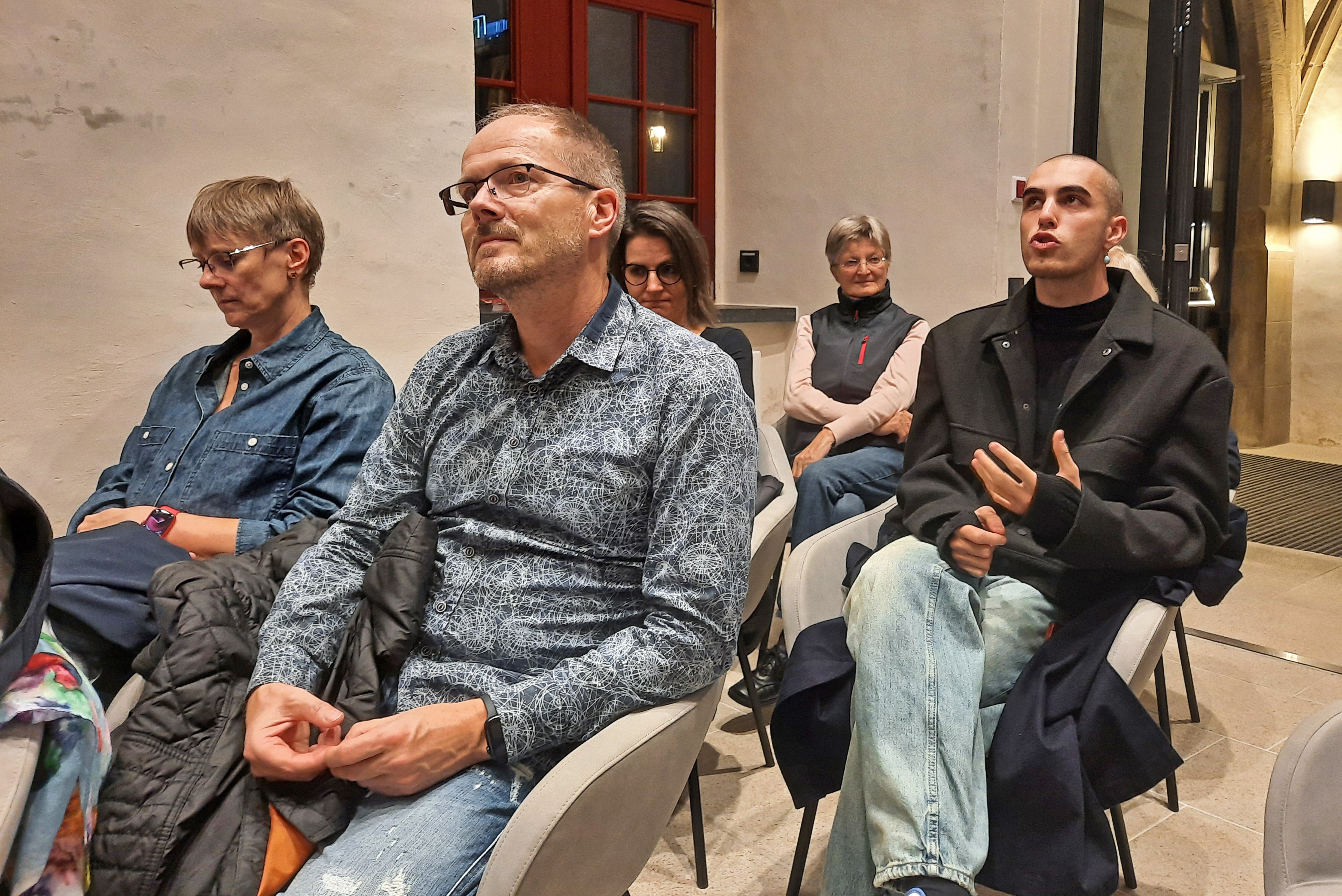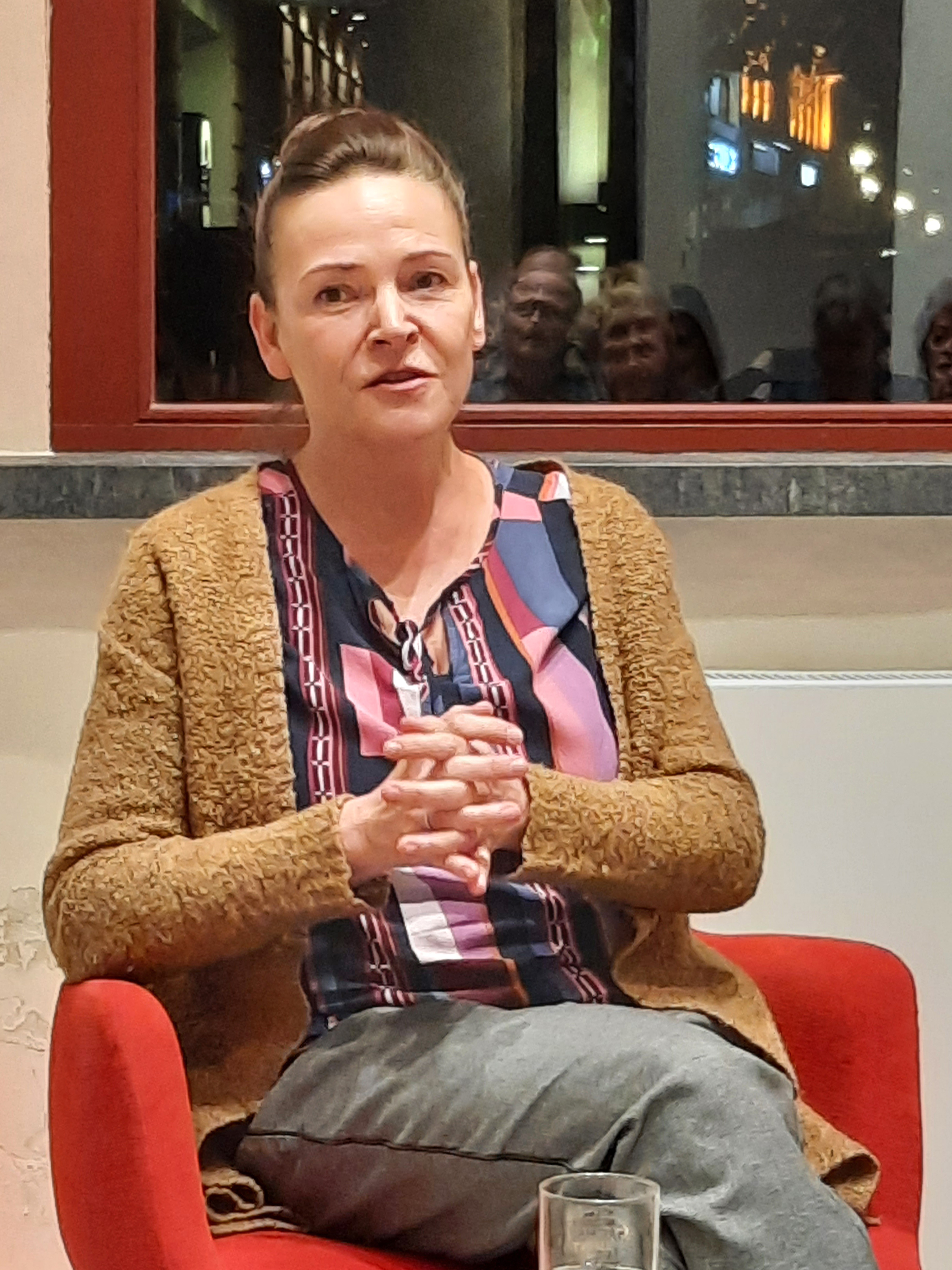 Aus dem Publikum gab es viele interessante Rückfragen: Wie lange im Voraus werden Stücke konzipiert? Musste sie schon mal eingreifen, wenn ein Regisseur ein Stück vor die Wand gefahren hatte? Was ist das Schönste an ihrer Arbeit? Auf alle diese und weitere Fragen erhielten wir eine Antwort.