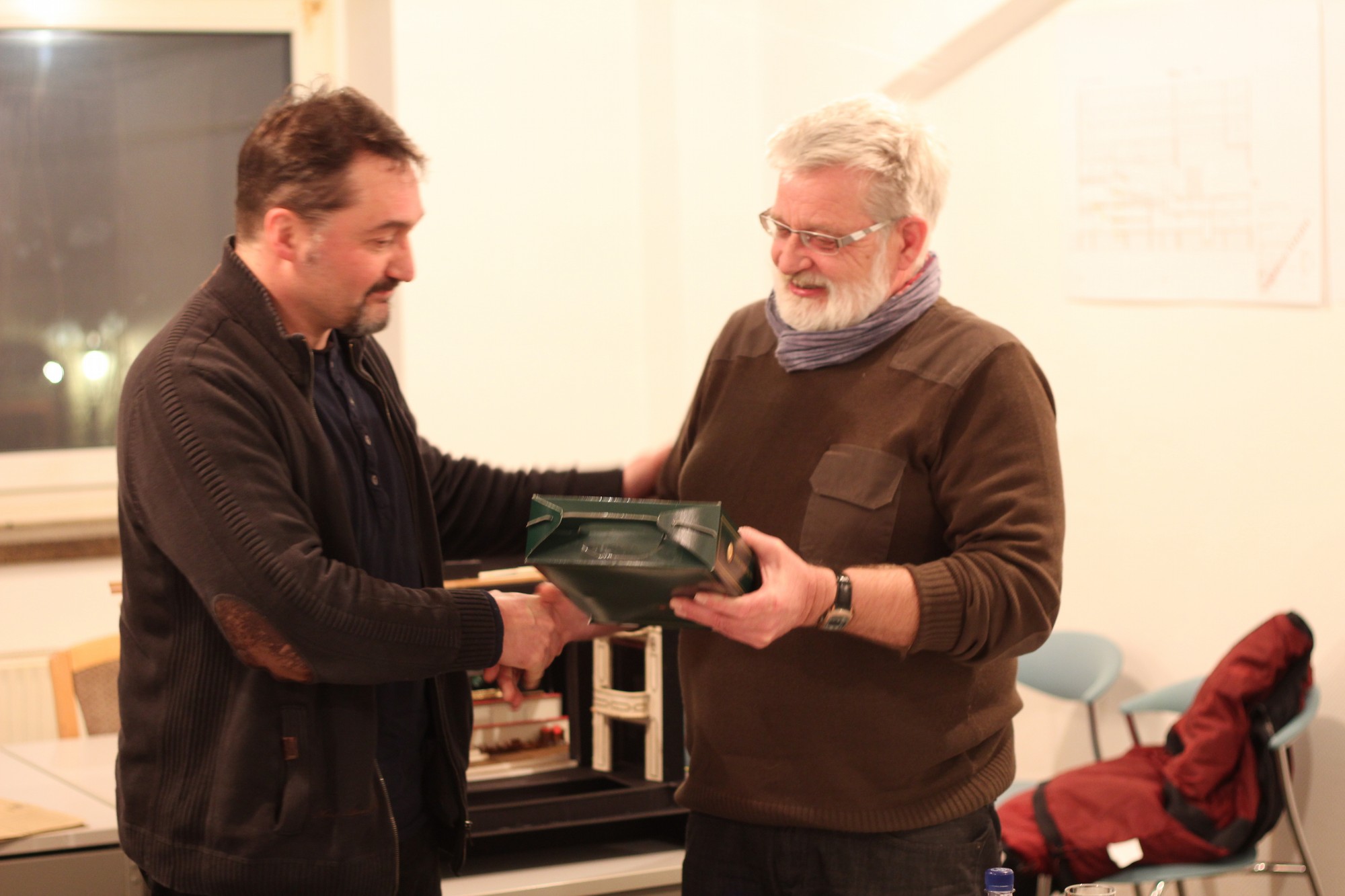 19:00 Uhr begann der Stammtisch mit einem der beiden Zwickauer stückführenden Meister, Bühnenobermeister Herrn Kozok. Im kleinen Kreis der Vorstandsmitglieder konnte intensiv über seine über 30-jährige Tätigkeit am Theater in Zwickau geplaudert werden. Dabei kamen - nicht zuletzt durch die zu jedem Stück erstellte ausführliche Dokumentation und das vorgestellte Modell eines Bühnenbildes - völlig neue und für uns Laien unbekannte Details dieser abwechslungsreichen Tätigkeit „hinter den Kulissen" zum Vorschein.