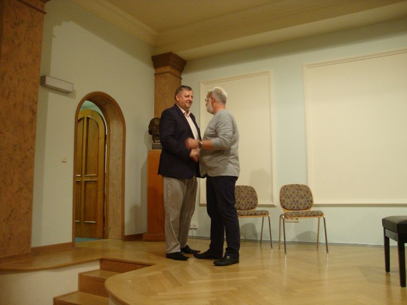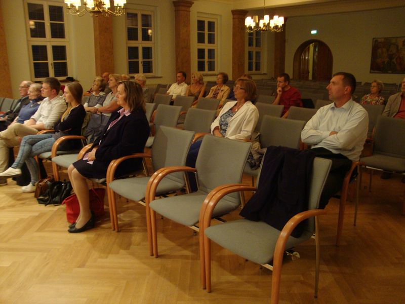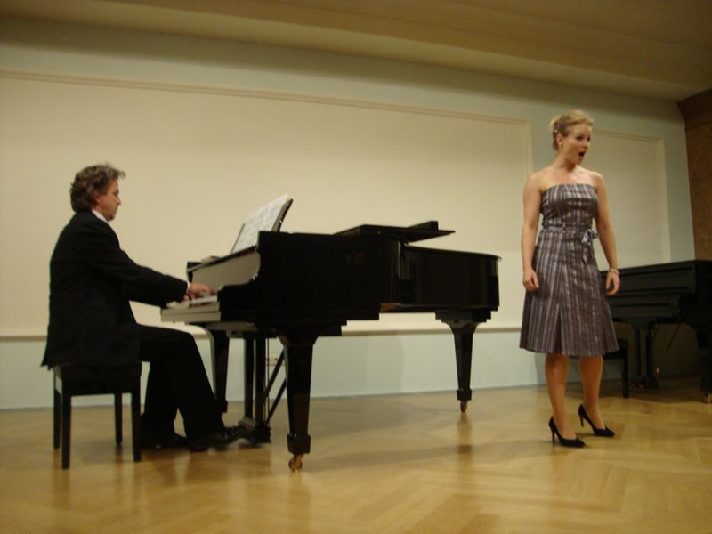 Insgesamt 30 neue Mitarbeiter konnte das Theater einstellen, davon 15 Solokünstler. Gleich zwei neue Gesichter bekamen wir zu sehen, die mit ihrem Gesang die anwe-senden Mitglieder des Theaterfördervereins erfreuten: John Pumphrey sang neben ei-ner Solo Arie ein wunderbares Duett mit Julia Ebert. Mit dem Evergreen „Ich bin die Christel von der Post“ aus der Operette „Der Vogelhändler“ gab sie eine eindrucksvolle Kostprobe ihres Könnens. Beide Künstler wurden am Flügel begleitet von Martin Bargel. Der Beifall war ihnen sicher im Robert-Schumann-Haus, dessen Konzertsaal uns Dr. Synofzik exklusiv am Montag, den 08.09.2014, zur Verfügung gestellt hatte.