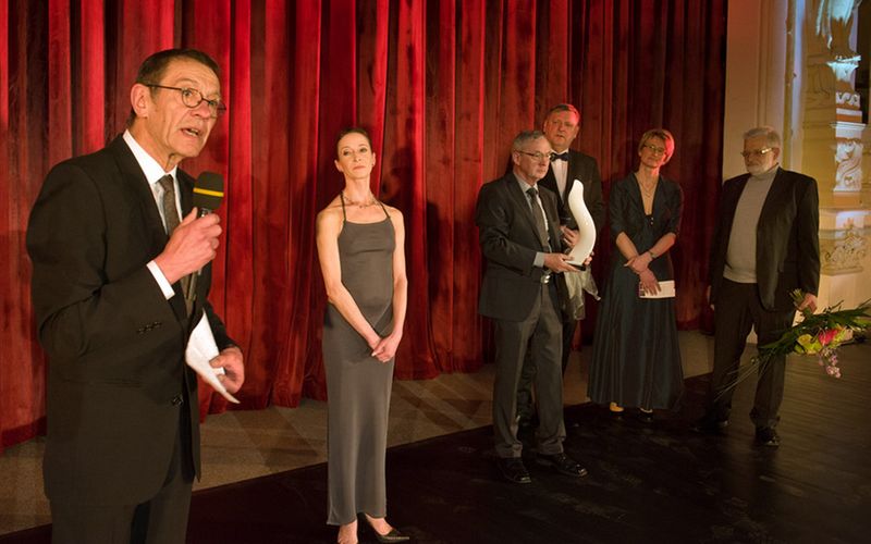Bei der feierlichen Verleihung des diesjährigen Publikumspreises an die Tänzerin Elena Tumanova durch den Vorsitzenden unseres Vereins Henry Klüglich, den Geschäfts-führer der Mauritius Brauerei, Herrn Otto, sowie die Geschäftsführerin der Theater Plauen Zwickau gGmbH Sandra Kaiser und den Generalintendanten Roland May fand Ballettmeister Thomas Hartmann sehr persönliche Worte für die Künstlerin: