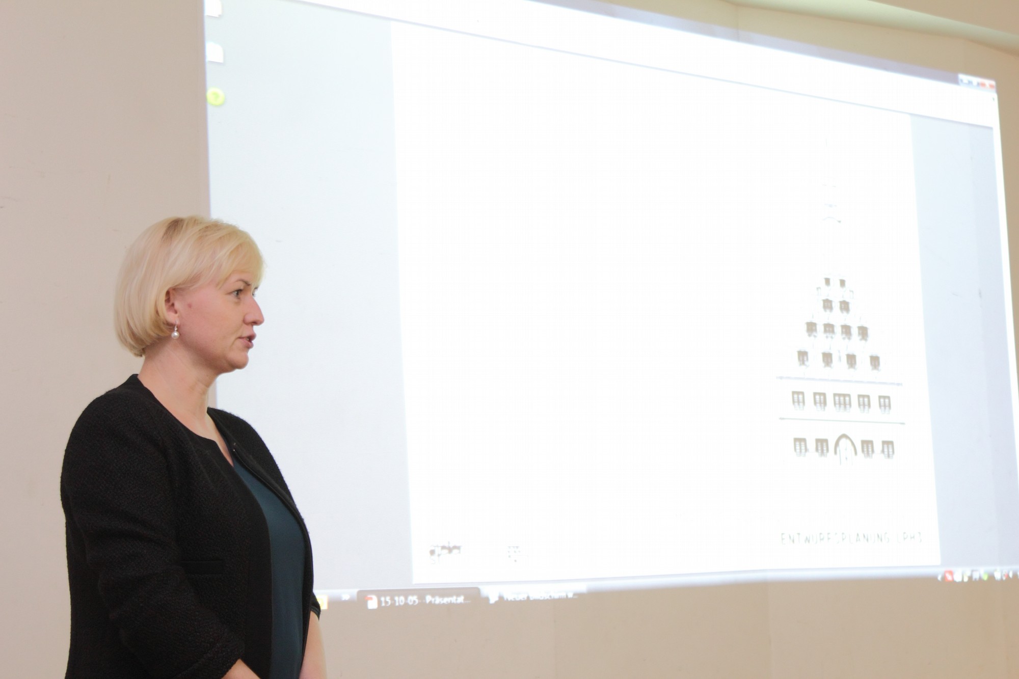 Besonders interessiert lauschten unsere Mitglieder den Ausführungen von Frau Köhler, wie sie persönlich das Projekt Theatersanierung sieht. Trotz aller aktuellen Probleme unserer Stadt blickt die Baubürgermeisterin hoffnungsvoll in die Zukunft der Sanierung des Theaters. Nach ihrer Einschätzung stehen die Stadtratsfraktionen auch weiterhin zur Umsetzung dieses Bauvorhabens. Das dürfte auch die Geschäftsführerin gern gehört haben, denn Frau Kaiser machte deutlich, dass für das Theater die Einhaltung des geplanten zeitlichen Ablaufes eine große Rolle spielt. Das Theater braucht verlässliche Angaben. Frau Köhler berichtete über den aktuellen Stand der Planung. An dieser Stelle gab sie den Staffelstab weiter an den Projektsteuerer, Herrn Hertrampf. Dieser präsentierte sehr anschaulich das Vorhaben - auch Dank der modernen Technik -. Uns wurde anhand von Zeichnungen und Modellbildern die vorgesehene Außengestaltung aber auch die neue Innenaufteilung nähergebracht. Besonders überraschend war für alle der Einblick in die vorgesehene Foyergestaltung und die Gestaltung des Zuschauerraums. So konnten sich alle Teilnehmer schon mal ein Bild davon machen, wie das Herzstück des Projekts im Jahr 2018 aussehen soll. Herr Hertrampf lobte die gute Zusammenarbeit mit den Vertretern unseres Theaters, denn so können bereits jetzt bestimmte Details vor dem Hintergrund der späteren Nutzung berücksichtigt werden.