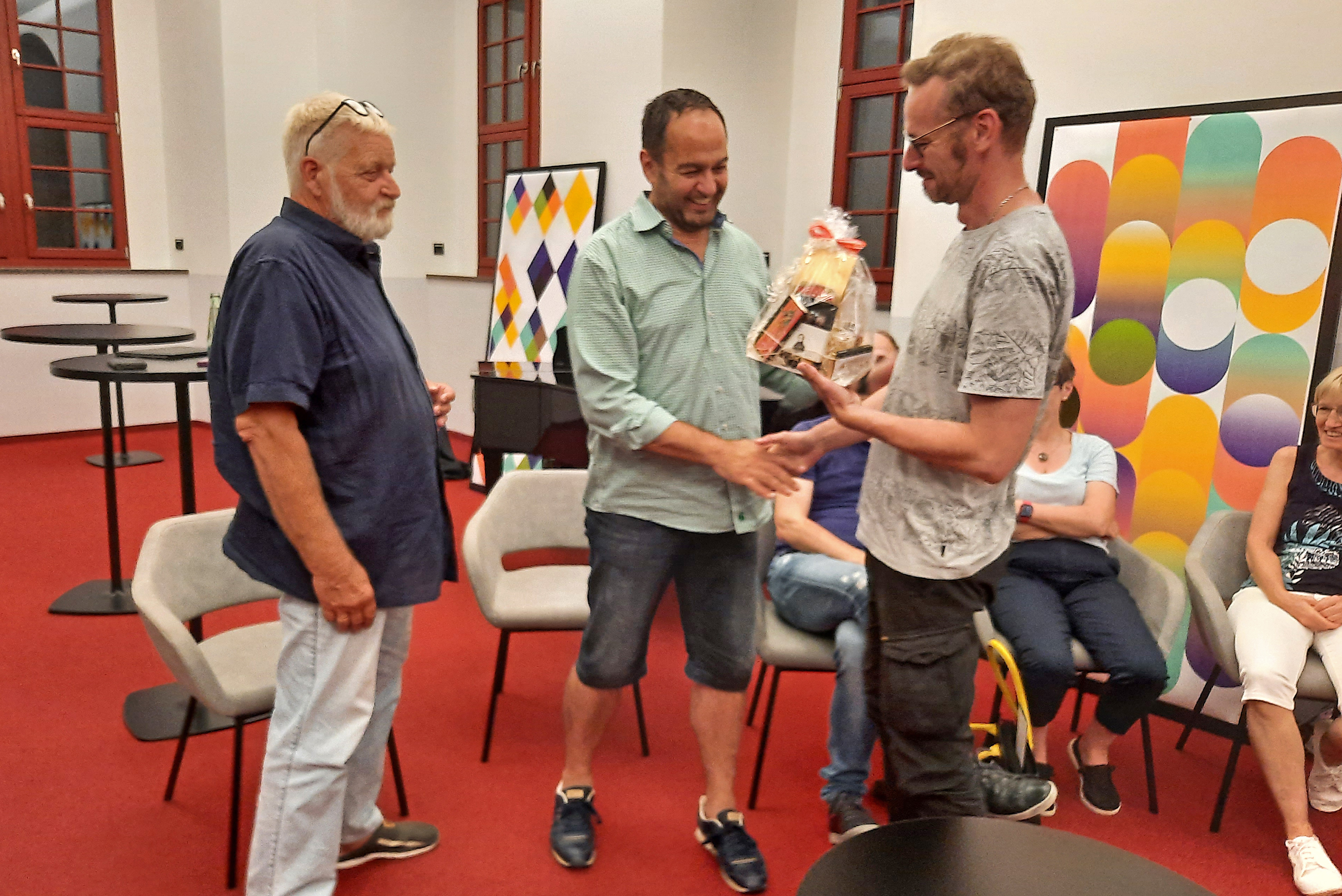 Zwischendurch konnten wir mehrfach den musikalischen Darbietungen des GMD am Flügel lauschen. Zum Abschluss gab es neben herzlichem Applaus auch ein kleines Präsent und voller Vorfreude auf die neue Saison sind alle beschwingt nach Hause gegangen.