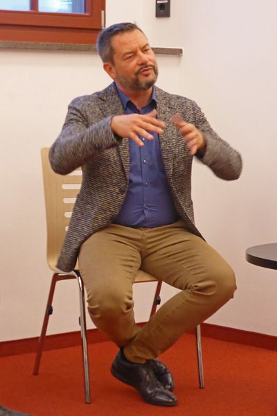 So stellte sich der designierte Generalintendant, Dirk Löschner, am 04.04.2022 im Rahmen des Stammtischs den zahlreichen Mitgliedern unseres Vereins und den interessierten Gästen vor. Über verschiedene Stationen kam der studierte Schau- und Puppenspieler an unser fusioniertes Haus und fühlt sich – wie er sagte – vom ersten Moment an wohl in Plauen und Zwickau. Nach einem kurzen Abriss über seinen bisherigen Werdegang bekräftigte Herr Löschner, dass er nicht plant, das gesante Theater umzukrempeln. Sicher wird es hier und da diverse Wechsel geben, aber ein Großteil des Ensembles bleibt. Und die neuen Spartenleiter werden natürlich ihre Handschrift einbringen, z. B. im Tanztheater. Aber das macht es ja für uns auch spannend!