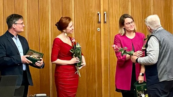 Mit einem kleinen Präsent und herzlichen Worten bedankte sich Herr Klüglich bei den Künstlern. Danach wurde das Buffet eröffnet und bei vielen interessanten Gesprächen klang der Abend dann gegen 21:00 aus. Besonders gefreut haben wir uns, dass die Künstler unserer Einladung folgten und noch einige Zeit mit uns verbrachten.