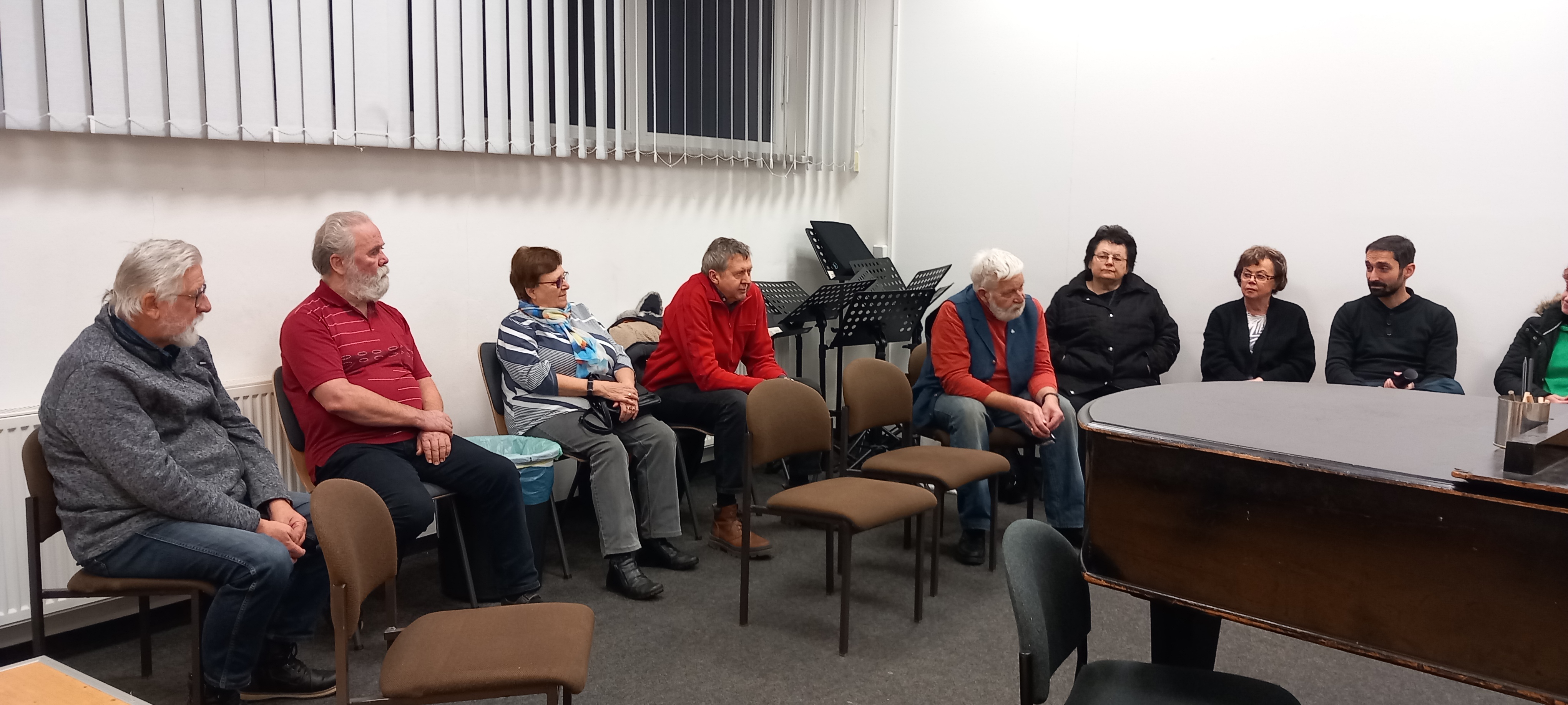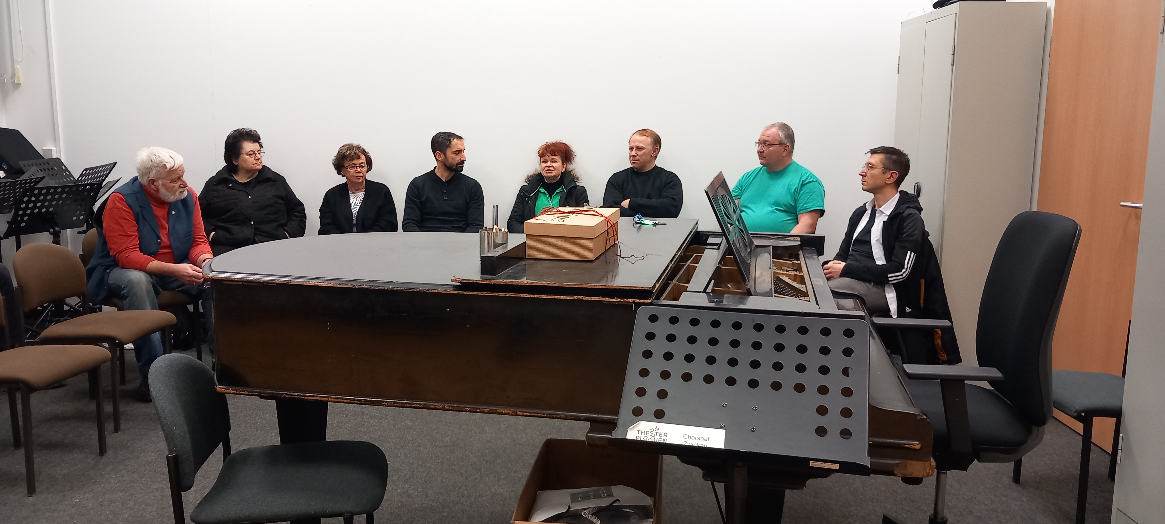 Der Januar-Stammtisch fand im Chorsaal statt, denn wir waren zu Gast beim Opernchor. Die Räumlichkeiten waren nicht so einfach zu finden, denn der Chor probt in Zwickau nicht im Gewandhaus. Aber schließlich waren alle da und hörten eineinhalb Stunden Interessantes aus dem Alltag der Chorsänger:Innen. Die Mitglieder des Chorvorstandes und der Chordirektor waren im Gespräch mit Patrick Pühn.