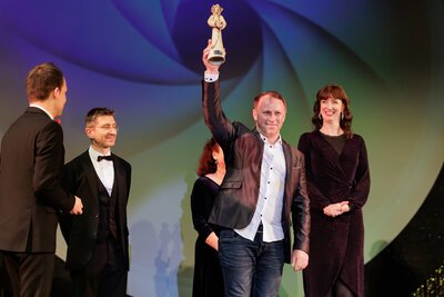 „And the Oscar goes to…“ – Wer kennt diesen Satz nicht? Unter den über 40 Nominierten des Theaters vom Generalintendanten bis zum Einlassdienst machte ein Ensemble das Rennen: Theaterliebling der Spielzeit 2023/24 ist der Opernchor. Dieser wurde extra für die Verleihung ins Ballhaus „gelockt“, und die Überraschung war groß. Norman Sengewald vom Chorvorstand nahm den Preis stellvertretend für alle in Empfang. Wir beglückwünschen den Opernchor und danken allen, die an der Abstimmung teilgenommen haben. Sie zeigt, dass viele Hände – vor und hinter der Bühne – nötig sind, um eine Inszenierung auf die Beine zu stellen.