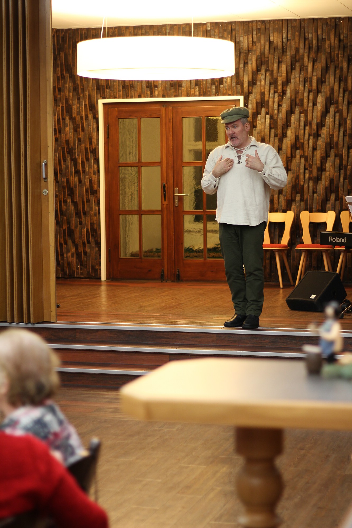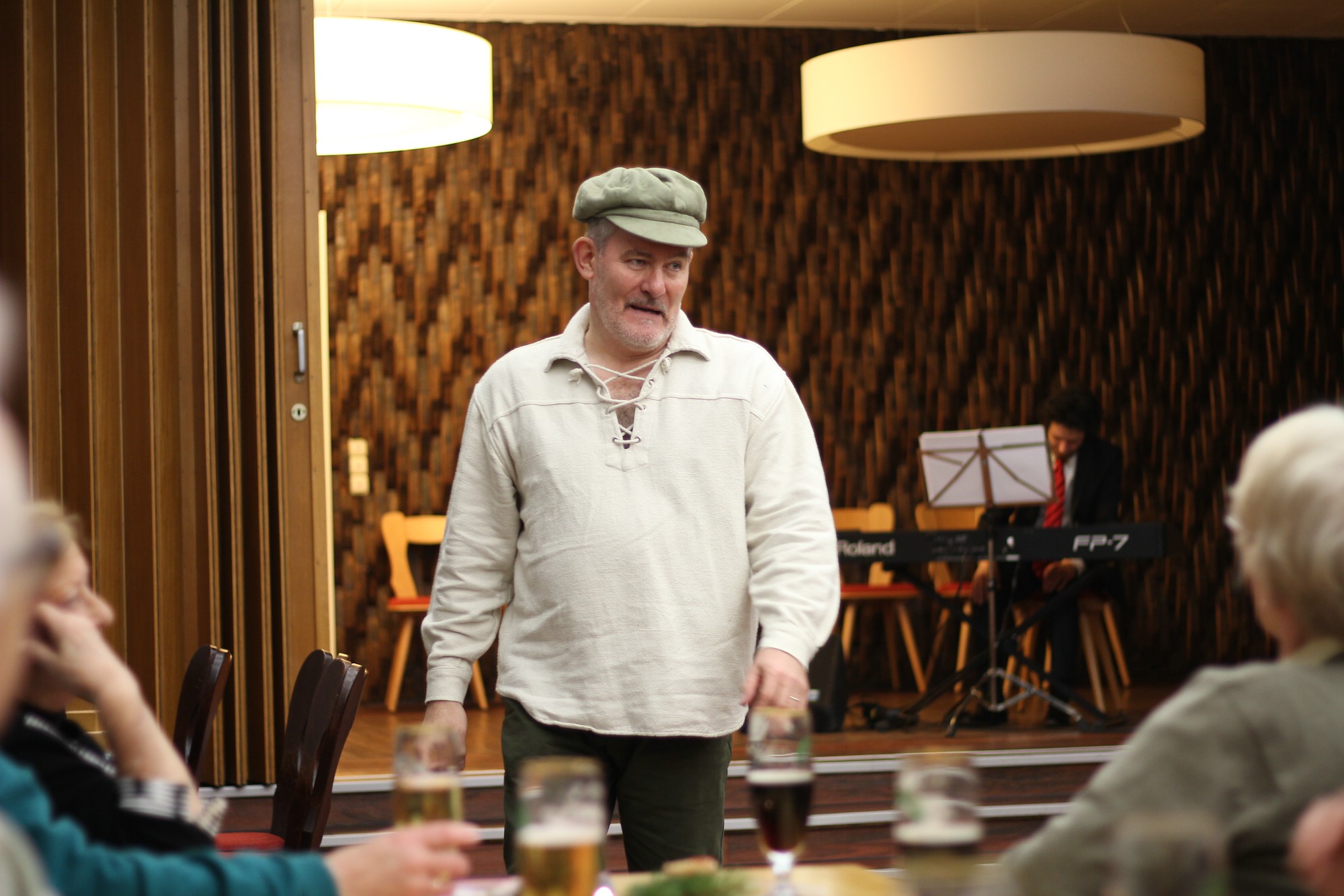 Trotz Regenguss abends am 3. Dezember 2018, konnte man die Weihnachtsstimmung im Schalander der Mauritiusbrauerei spüren. Der Raum war weihnachtlich geschmückt und wer eine gute Nase hatte, konnte den Duft von Räucherkerzchen wahrnehmen. Unser Vorsitzender, Henry Klüglich, begrüßte die zahlreich erschienenen Gäste recht herzlich. Und, wie schon zu einer guten Tradition geworden, stimmten Künstler unseres Theaters musikalisch auf die Adventszeit ein. Maxi Ratzkowski, künstlerische Produktionsleiterin und leitende Dramaturgin Schauspeil am Theater, führte durch das Programm. Vom Milchmann aus “Anatevka“, gesungen von Frank Blees (Sänger, seit dieser Spielzeit im Ensemble), erfuhren wir, was er alles machen würde, wenn er einmal reich wäre. Spontan bekam der „arme Mann“ von einer Zuschauerin eine Kopfbedeckung. Schauspielerin Julia Hell schwärmte von ihrem himmelblauen Trabant, eine Kostprobe aus „Horch was kommt von Draußen rein“. Zum Abschluss konnten wir alle von einer weißen Weihnacht träumen. Vielleicht erfüllt sich der Traum. Musikalisch wurden die beiden Künstler von Mark Johnston, Solorepetitor und Dirigent, am E-Piano begleitet. Mit viel Applaus und einem kleinen Dankeschön wurden die Künstler verabschiedet. Ein Dankeschön ging stellvertretend auch an Horst Grunwald von der (Ton)Technik. Anschließend lud Henry Klüglich an das kalte Buffet. Danach war genügen Zeit, um Gespräche zu führen und um den Theaterliebling zu wählen.