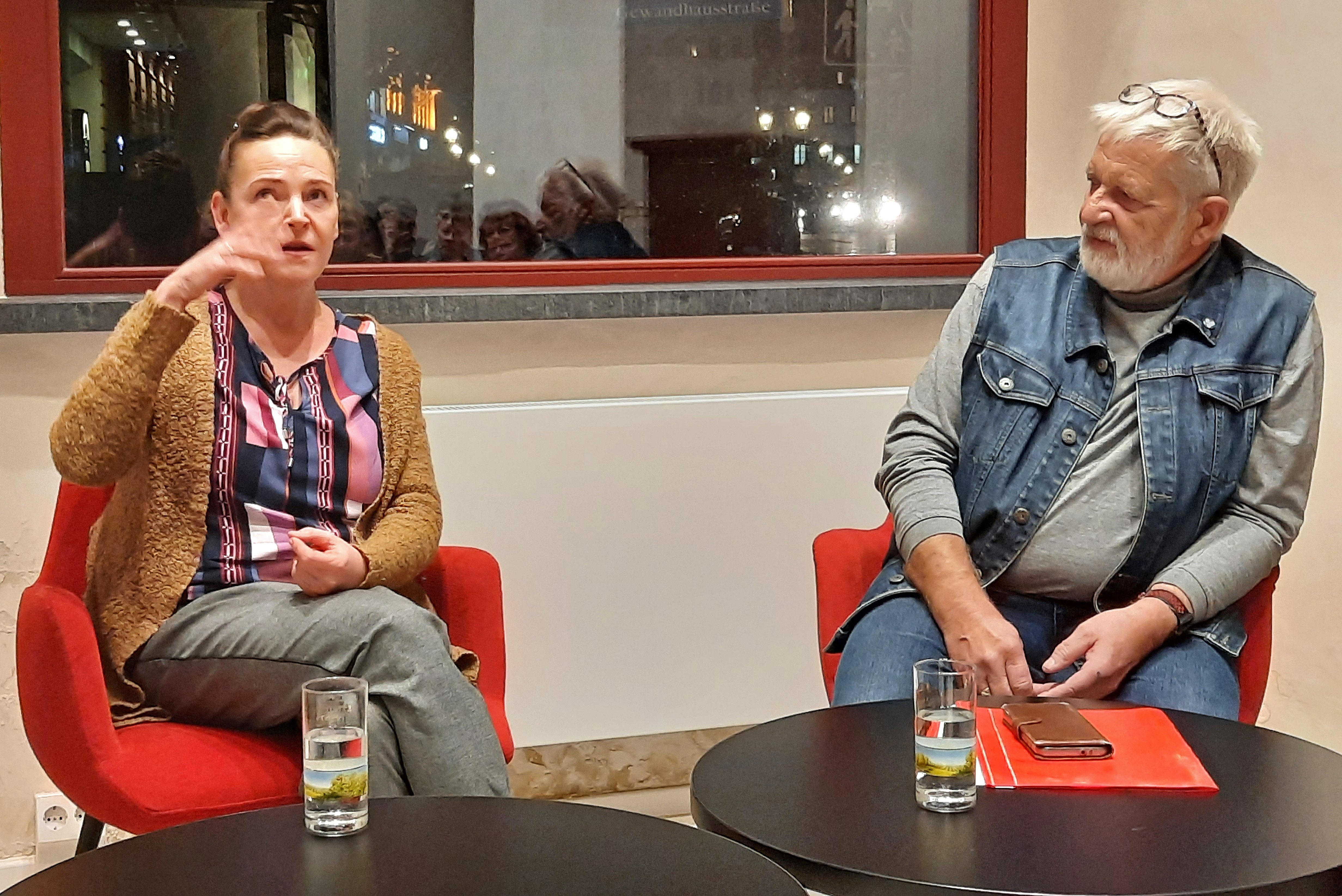 Aus dem Publikum gab es viele interessante Rückfragen: Wie lange im Voraus werden Stücke konzipiert? Musste sie schon mal eingreifen, wenn ein Regisseur ein Stück vor die Wand gefahren hatte? Was ist das Schönste an ihrer Arbeit? Auf alle diese und weitere Fragen erhielten wir eine Antwort.