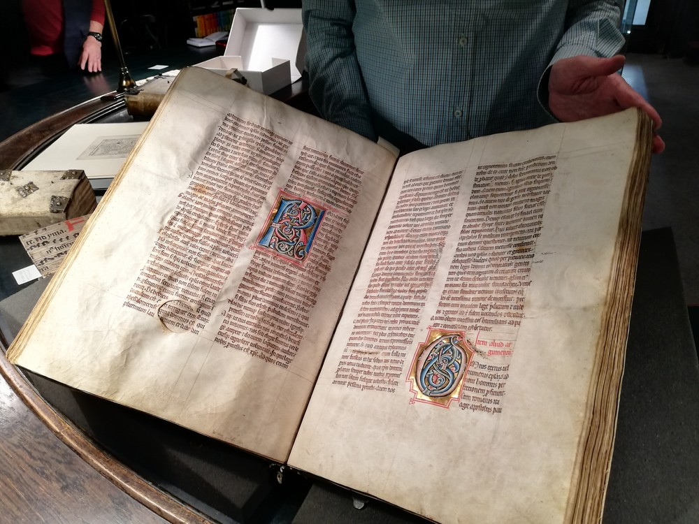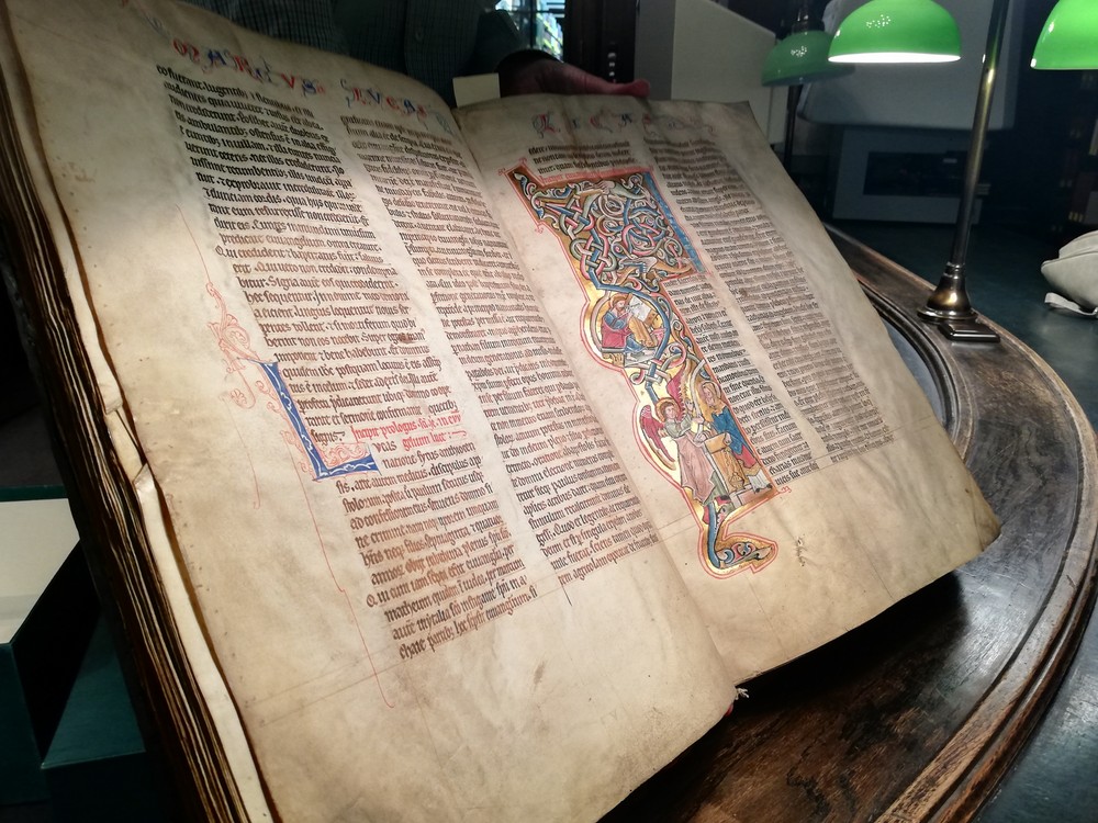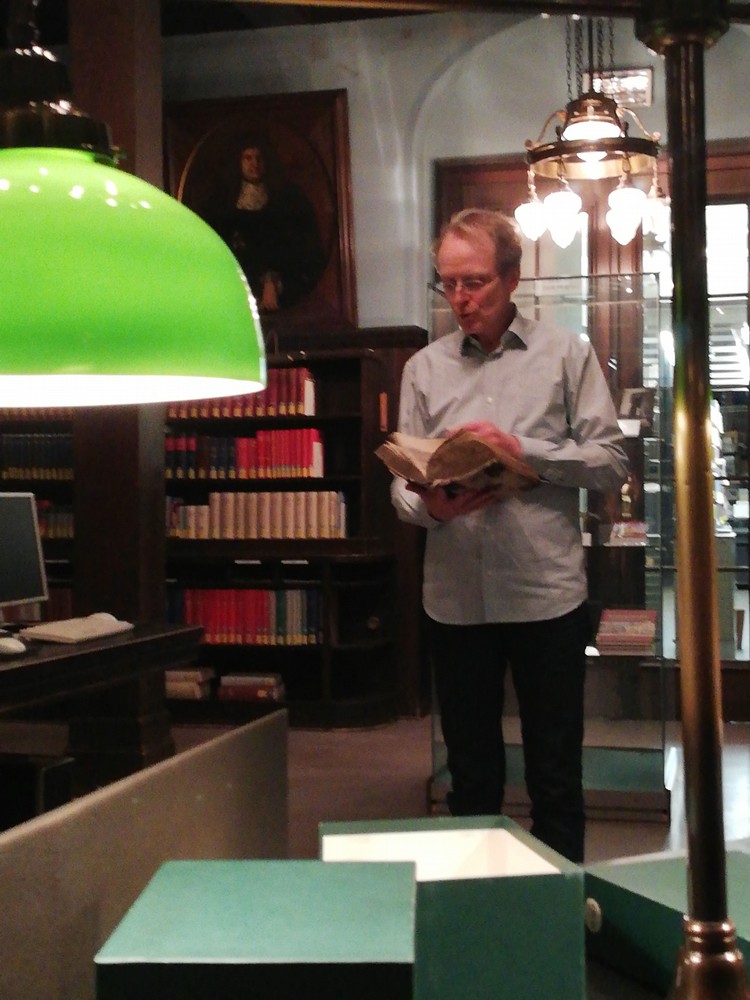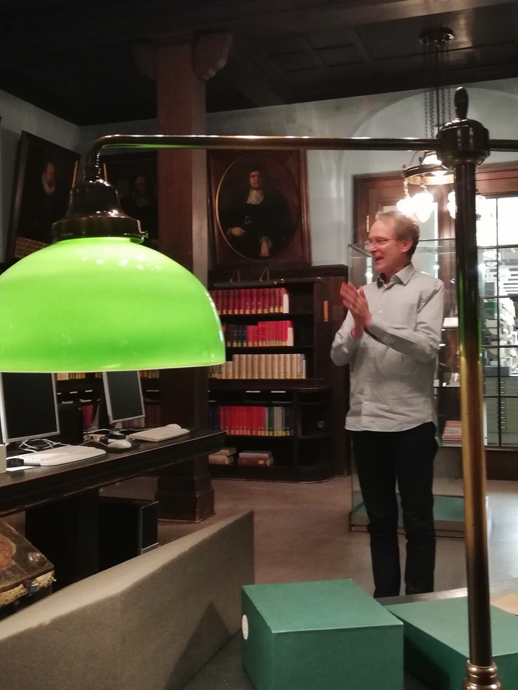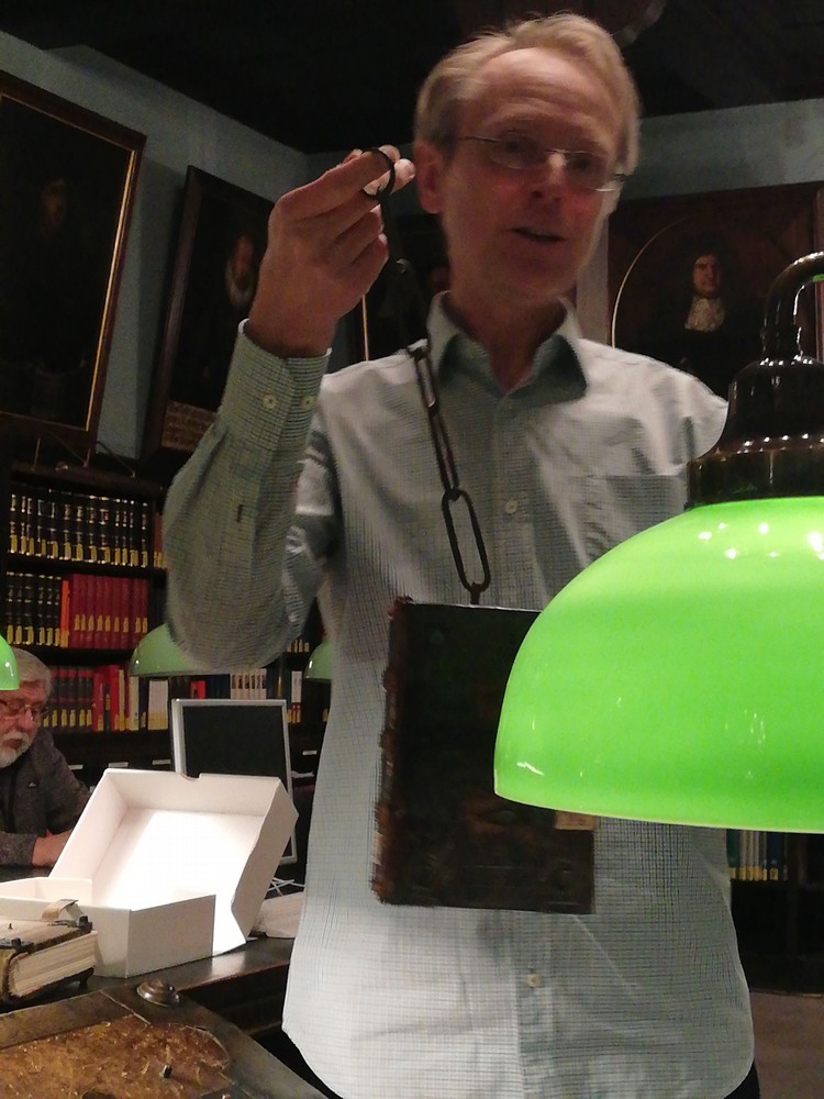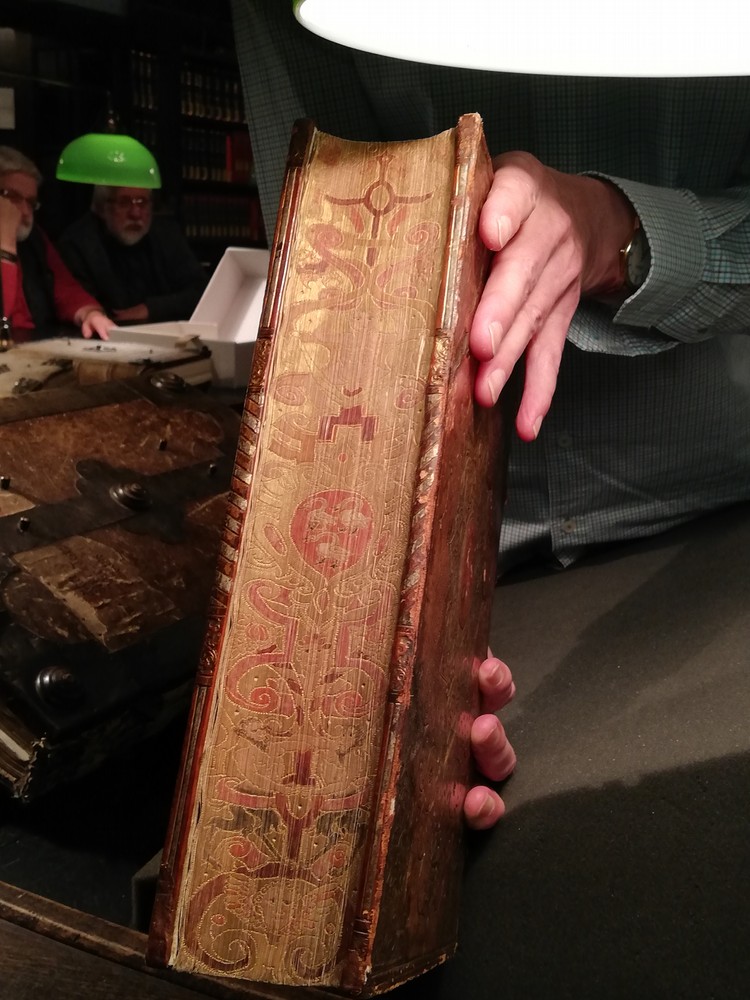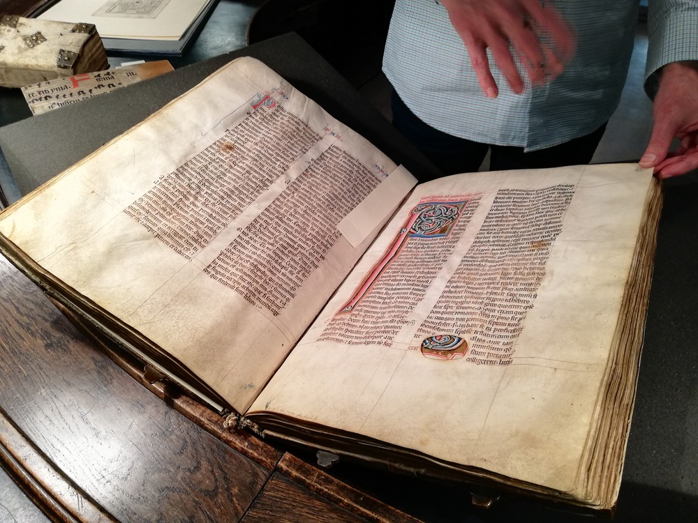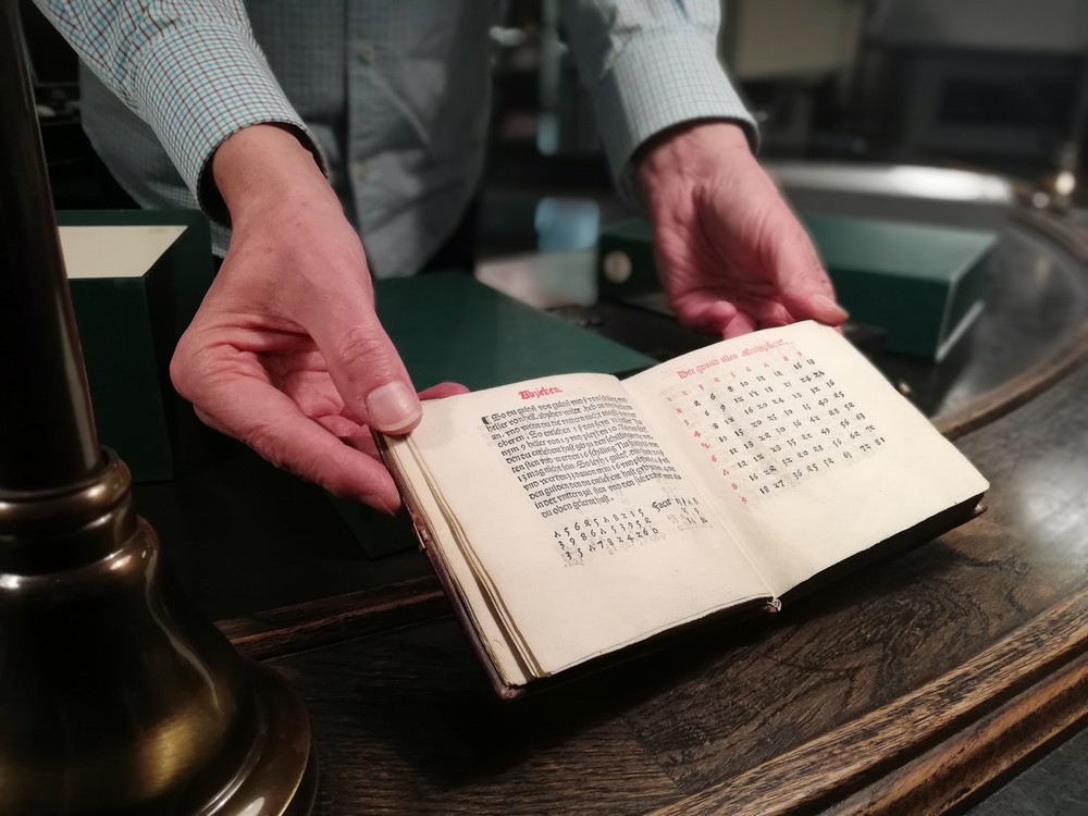 Der Leiter der Bibliothek, Dr. Lutz Mahnke, brachte uns seine Liebe zu den alten Büchern und den Geschichten dahinter auf seine kluge und unterhaltsame Art näher, die wohl jeden mitreißt. Stolz präsentierte er uns einen Teil der wertvollen Sammlung von alten Handschriften und Inkunabeln, die in der Schatzkammer der Bibliothek verwahrt werden, zu der uns aber leider der Zutritt verwehrt blieb. Die älteste Handschrift stammt von 830 aus dem Kloster in Lorch, es gibt hier das älteste Mathematikbuch in Deutschland, gedruckt 1483, die älteste Karte von Zwickau, eine Weltkarte von 1508 ... Zu jedem der Stücke hatte Dr. Mahnke eine Geschichte parat und die zwei Stunden vergingen wie im Flug.