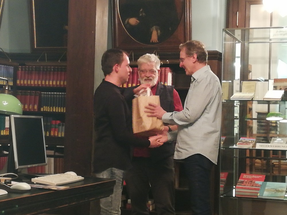Korrekt muß es heißen: ... in der ältesten öffentlichen wissenschaftlichen Bibliothek Sachsens. Das nämlich ist unsere Zwickauer Ratsschulbibliothek, wo wir zu unserem Januar-Stammtisch zu Besuch sein konnten.