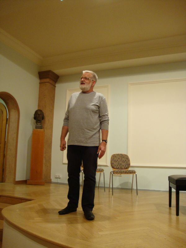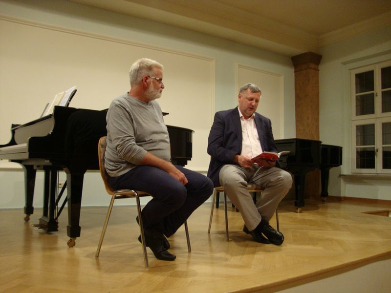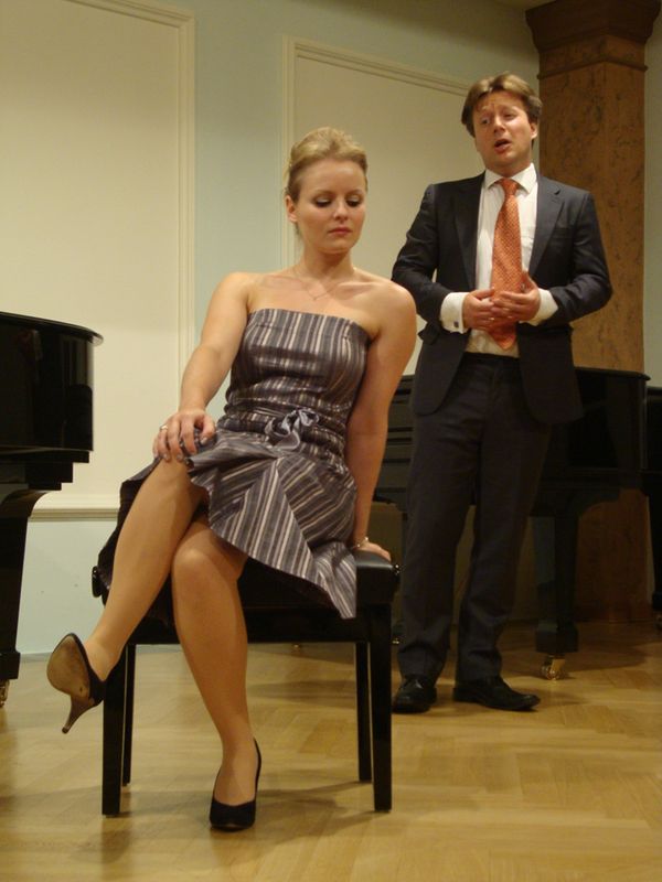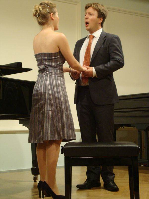 Insgesamt 30 neue Mitarbeiter konnte das Theater einstellen, davon 15 Solokünstler. Gleich zwei neue Gesichter bekamen wir zu sehen, die mit ihrem Gesang die anwe-senden Mitglieder des Theaterfördervereins erfreuten: John Pumphrey sang neben ei-ner Solo Arie ein wunderbares Duett mit Julia Ebert. Mit dem Evergreen „Ich bin die Christel von der Post“ aus der Operette „Der Vogelhändler“ gab sie eine eindrucksvolle Kostprobe ihres Könnens. Beide Künstler wurden am Flügel begleitet von Martin Bargel. Der Beifall war ihnen sicher im Robert-Schumann-Haus, dessen Konzertsaal uns Dr. Synofzik exklusiv am Montag, den 08.09.2014, zur Verfügung gestellt hatte.